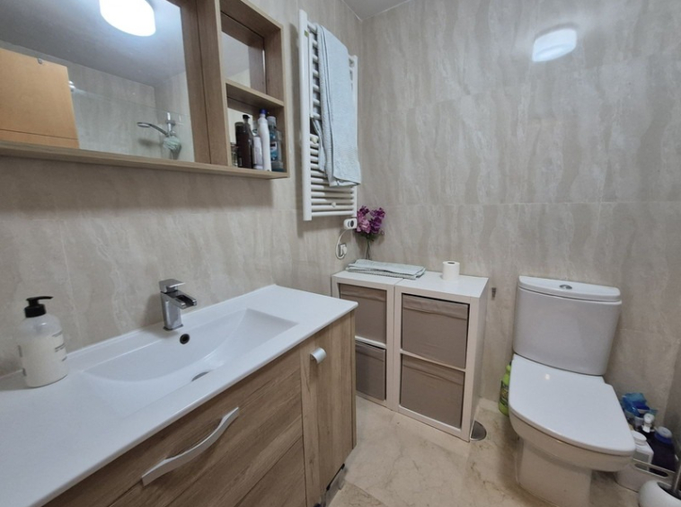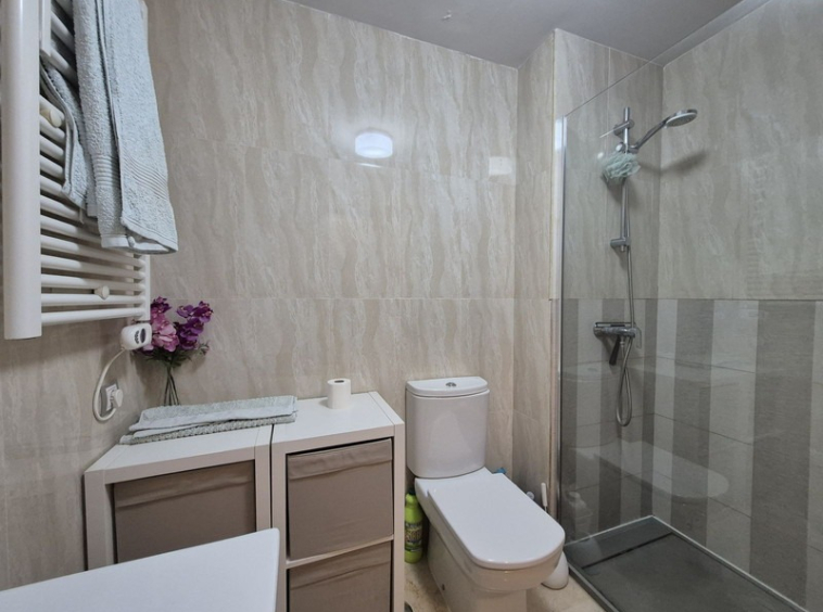 to the guest bathroom, also equipped with a shower. Both bedrooms are generously sized and include