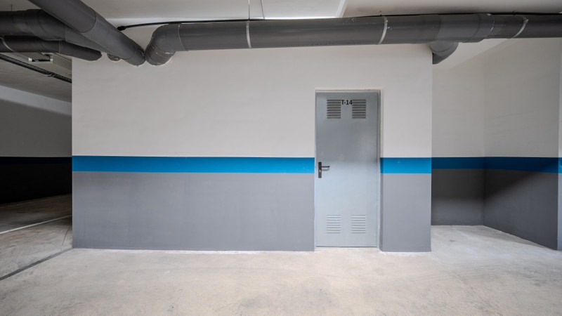 private parking space and a large storage room located in the basement,